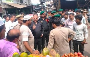 सहारनपुर। नगरायुक्त संजय चौहान के निर्देश पर आज नगर निगम अधिकारियों ने कोतवाली पुलिस को साथ लेकर घण्टाघर से चौक फव्वारा तक पैदल भ्रमण कर अतिक्रमण करने वाले दुकानदारों को समझाया और साथ ही चेतावनी दी कि यदि कल से सड़क पर सामान रखा पाया गया तो सामान जब्त कर पांच हजार रुपये का जुर्माना लगाया जायेगा और अतिक्रमणकारी के खिलाफ थाने में मुकदमा भी दर्ज कराया जायेगा।