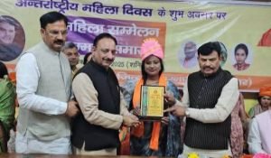 सहारनपुर। अंतर्राष्ट्रीय महिला दिवस के अवसर पर भाजपा कार्यालय, पार्श्वनाथ सिटी, दिल्ली रोड पर महिला सम्मान समारोह आयोजित किया गया। कार्यक्रम में मुख्य अतिथि वन राज्य मंत्री केपी मलिक ने विभिन्न क्षेत्रों में उत्कृष्ट कार्य करने वाली महिलाओं को सम्मानित किया। सम्मानित महिलाओं में गीता चटर्जी (अधिवक्ता), कोमल पवार (चेयरमैन, सरसावा), डॉ. तूलिका गोयल, शिवाली (वेटलिफ्टिंग स्टेट गोल्ड मेडलिस्ट), गीता रानी (ब्लॉक प्रमुख, रामपुर मनिहारान), शिवालिक शर्मा (बेटी बचाओ-बेटी पढ़ाओ संयोजक) सहित कई अन्य महिलाएं शामिल रहीं।