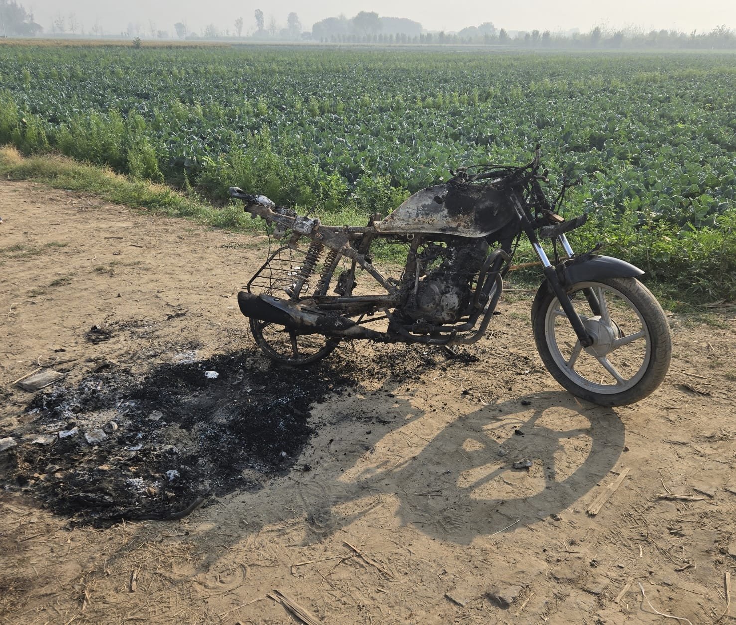 किसान की बाइक चोरी कर आग के हवाले, पुलिस जांच में जुटी; रंजिश का शक!