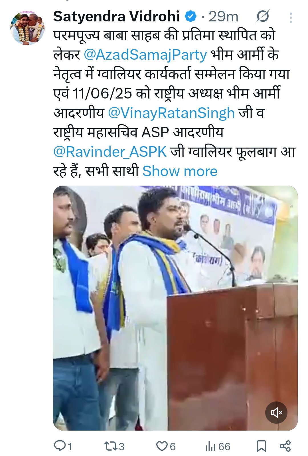 11 जून 2025 को ग्वालियर के फूलबाग मैदान में भीम आर्मी और ASP की ओर से बड़ी रैली आयोजित की जाएगी।