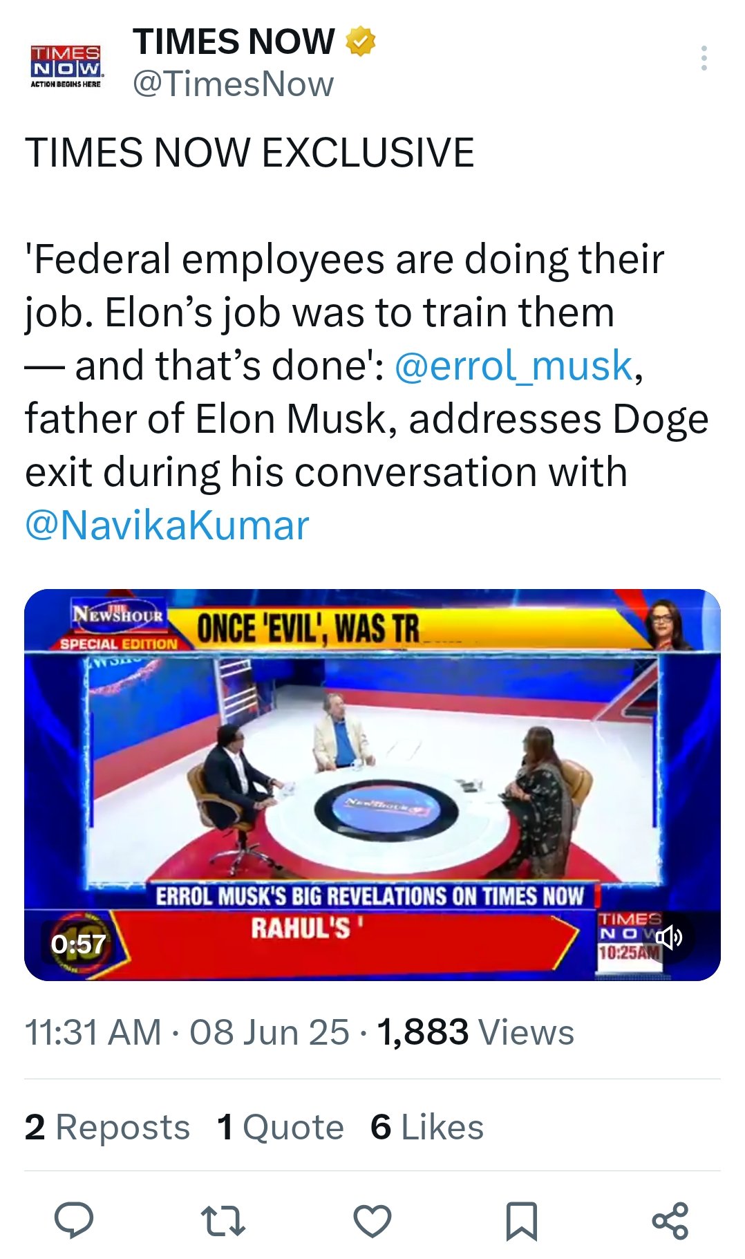 फेडरल कर्मचारियों की क्षमता पर भरोसा: एरोल ने जोर देकर कहा कि “फेडरल कर्मचारी पूरी क्षमता से काम कर रहे हैं। एलन की भूमिका सिर्फ उन्हें आधुनिक प्रबंधन के तरीके सिखाना था। अब वे इस लायक हैं कि खुद सिस्टम को संभाल सकें।” उन्होंने यह भी कहा कि एलन ने डीओजीई (Doge) के माध्यम से सरकारी खर्चों में कटौती का जो ढांचा तैयार किया, उसे अब स्थायी रूप से लागू किया जा सकता है।