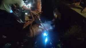 पुलिस ने नाले में गिरे गोवंश को रेस्क्यू कर बचाया