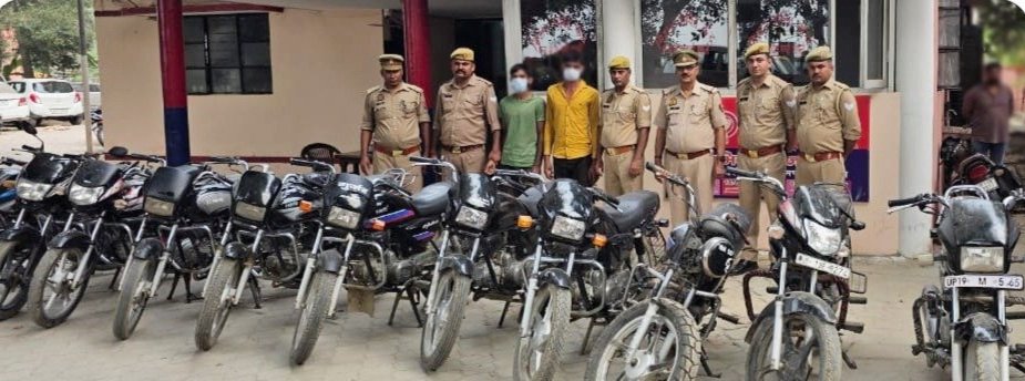 शामली। थाना आदर्श मंडी पुलिस ने चेकिंग अभियान के दौरान दो शातिर मोटरसाइकिल चोरों को गिरफ्तार कर उनके कब्जे से 13 चोरी की मोटरसाइकिलें, 2 फर्जी नंबर प्लेट, एक अवैध तमंचा, कारतूस और एक चाकू बरामद किया। ये बाइकें अलग-अलग थाना क्षेत्रों से चोरी की गई थीं, जिनकी बरामदगी से पुलिस को कई महत्वपूर्ण सुराग भी मिले हैं।
