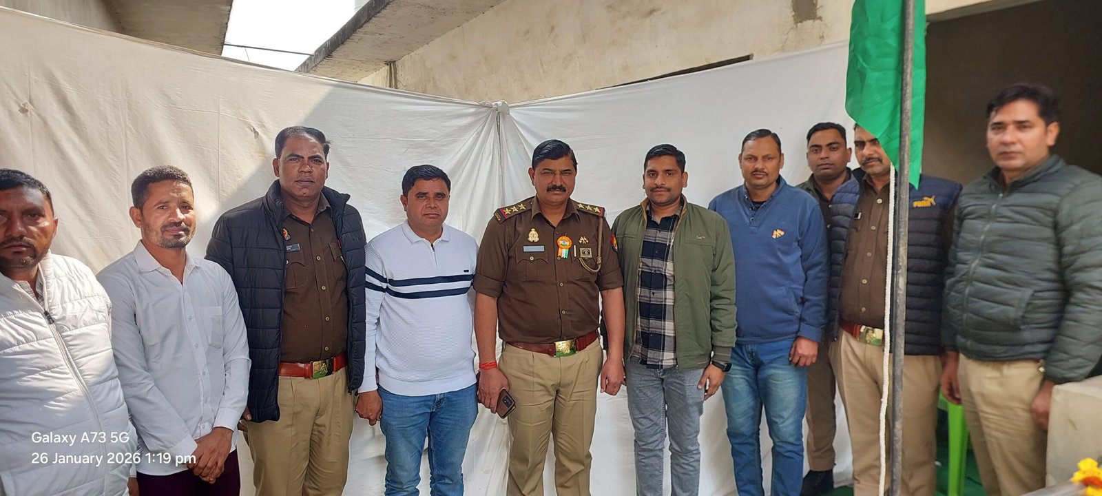 ध्वजारोहण के बाद उपस्थित पत्रकारों, पुलिस अधिकारियों एवं गणमान्य नागरिकों ने सामूहिक रूप से राष्ट्रगान गाया। राष्ट्रगान के दौरान पूरा परिसर देशभक्ति के रंग में रंगा नजर आया और वातावरण ‘भारत माता की जय’ तथा ‘वंदे मातरम्’ के नारों से गूंज उठा। कार्यक्रम में उपनिरीक्षक इंतिज़ार अहमद भी विशेष रूप से मौजूद रहे। ध्वजारोहण के पश्चात अपराध निरीक्षक योगेंद्र सिंह ने अपने संबोधन में कहा कि 26 जनवरी भारतीय लोकतंत्र का सबसे गौरवपूर्ण दिन है, क्योंकि इसी दिन देश में संविधान लागू हुआ था। संविधान ने प्रत्येक नागरिक को समानता, स्वतंत्रता और न्याय का अधिकार दिया है। उन्होंने कहा कि पत्रकार लोकतंत्र के चौथे स्तंभ के रूप में समाज और शासन के बीच सेतु का कार्य करते हैं। निष्पक्ष, निर्भीक और सत्यनिष्ठ पत्रकारिता से ही लोकतंत्र मजबूत बनता है। उन्होंने पत्रकारों से आह्वान किया कि वे समाज की वास्तविक समस्याओं को प्रमुखता से उठाएं और सत्य के साथ खड़े रहकर राष्ट्र निर्माण में अपनी अहम भूमिका निभाएं। उन्होंने कहा कि पुलिस और मीडिया दोनों का उद्देश्य समाज में शांति, व्यवस्था और न्याय स्थापित करना है।