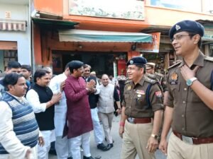 कार्यक्रम में व्यापार मंडल के पदाधिकारियों ने नगर में बढ़ती भीड़भाड़, यातायात व्यवस्था और बाजार क्षेत्र की सुरक्षा को लेकर अपने सुझाव रखे। इस अवसर पर व्यापारी पवन कंसल, रोहित गुप्ता, डॉ. रश्मिकांत जैन, मोहनलाल चावला, अरविंद कंसल, दीपक गुप्ता, अमन मित्तल, जहांगीर, प्रतिभा (सिमरन), सुधा तोमर सहित अनेक गणमान्य लोग उपस्थित रहे।